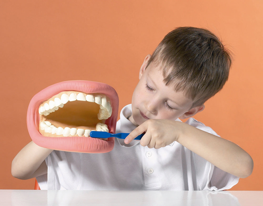 Excellent for demonstrating dental hygiene and tooth care. Can be manipulated manually in a hand-puppet like fashion. Great fun and educational! Comes complete with toothbrush.