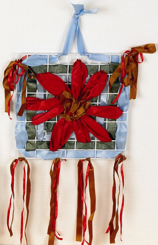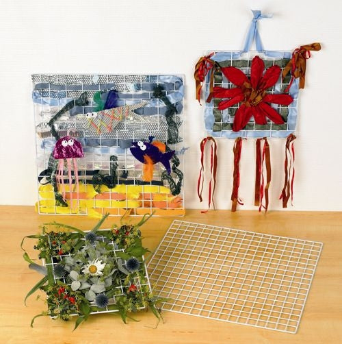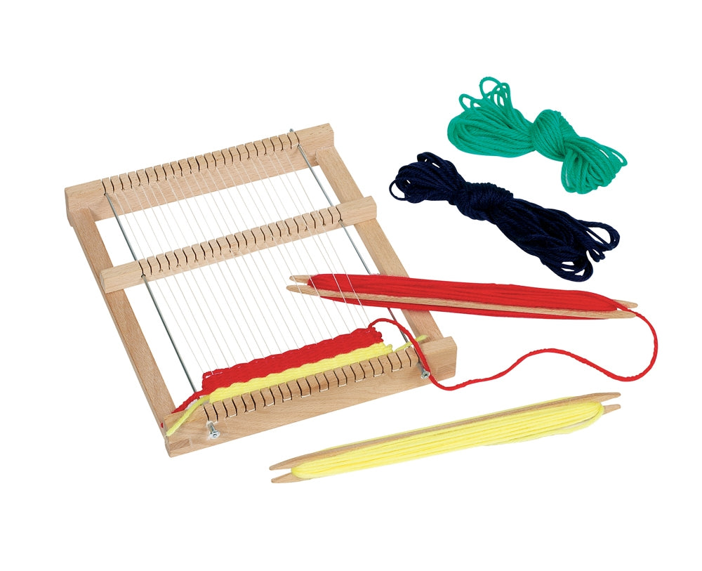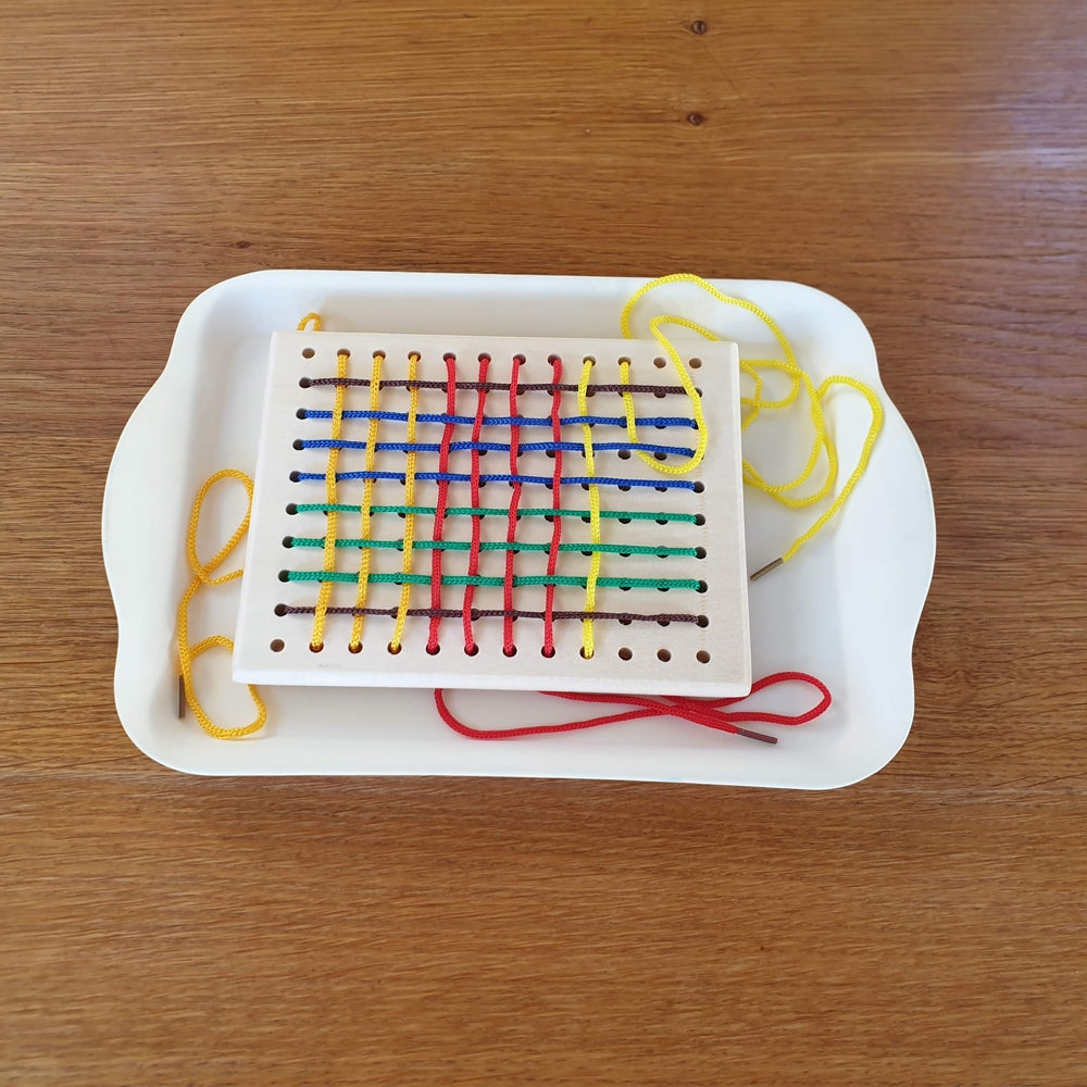 The child can devise own pattern or simply thread vertical and horizontal lines.