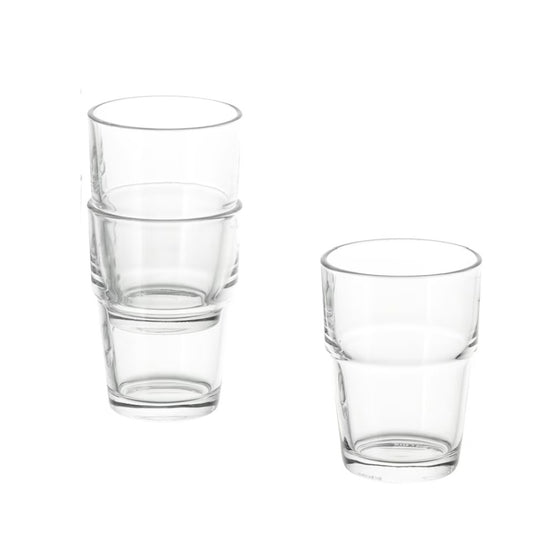 squeeze up coloured water from one glass and release into the other, vary this with the size of container and use a baster