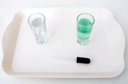 2 shot glasses, pipette, tray