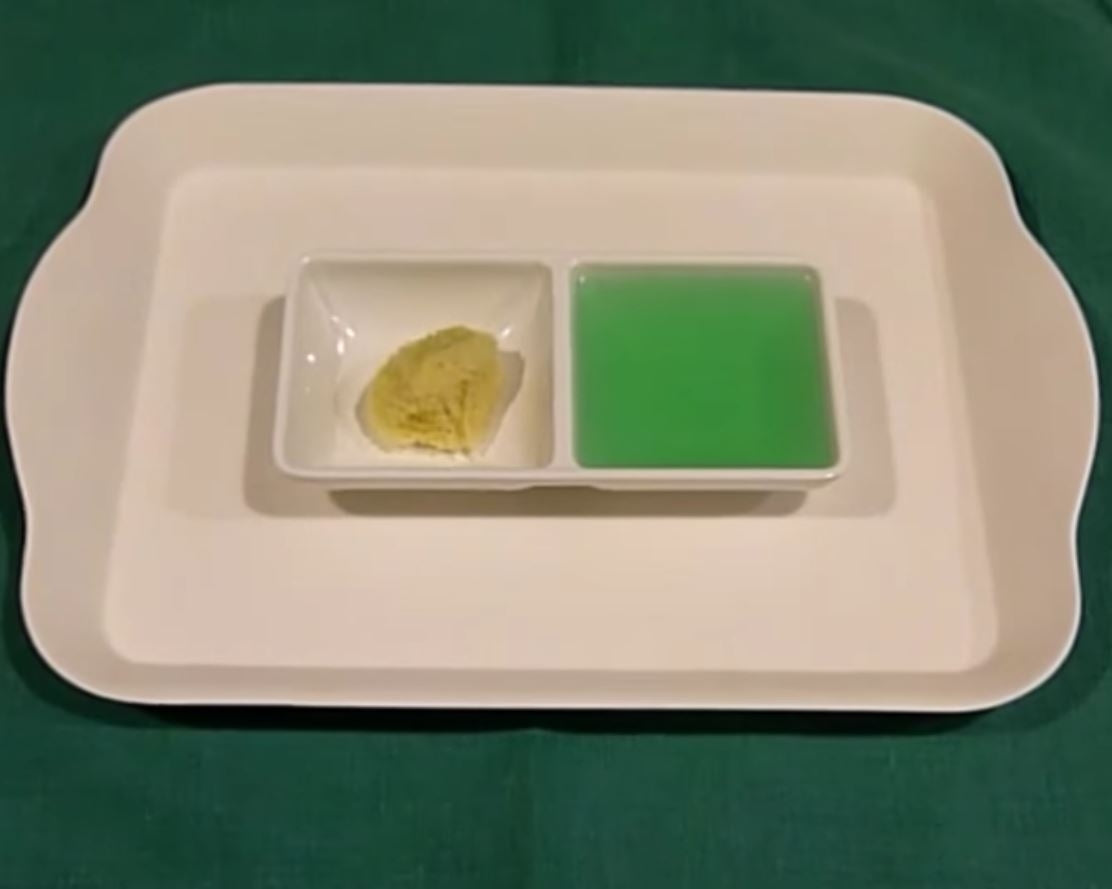 2 bowls, mini sponges, garlic press or tongs, tray