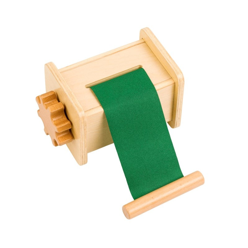 Introducing the principle of cause and effect and the peek-a-boo effect, and at the same time stimulating motor skills. By pulling out and subsequently winding the strip, the child learns that something exists even when not seen.