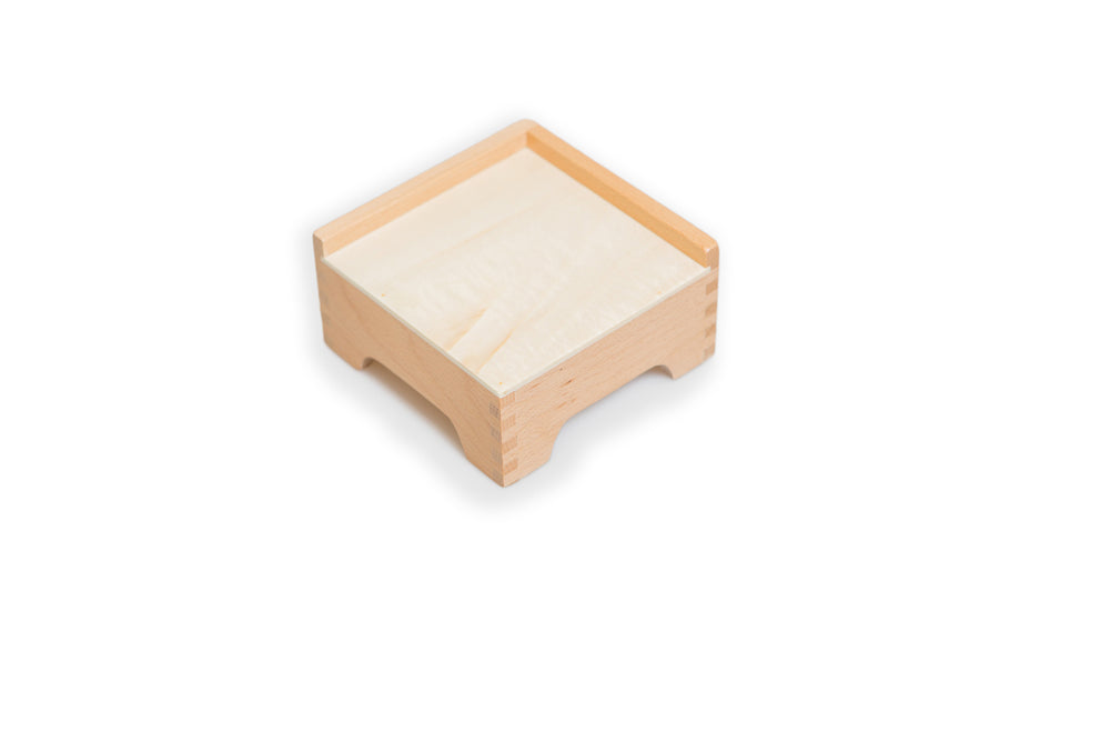 A wooden stand designed specifically for the pink tower.