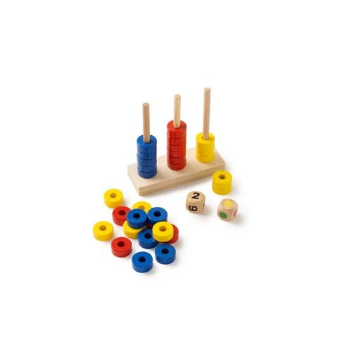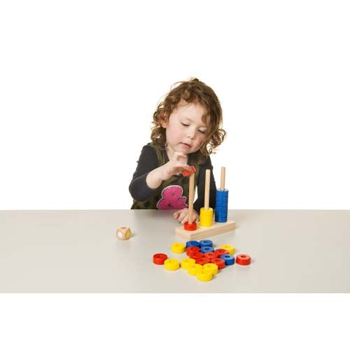 Aim to be the first to fill up the sticks by throwing dice to collect rings. Practise counting, addition and subtraction.