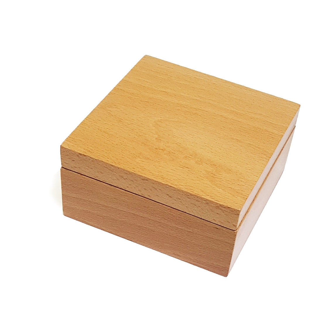 A beechwood box with a lid, internal dimensions 10cm x 10cm. Approx depth 4cm.