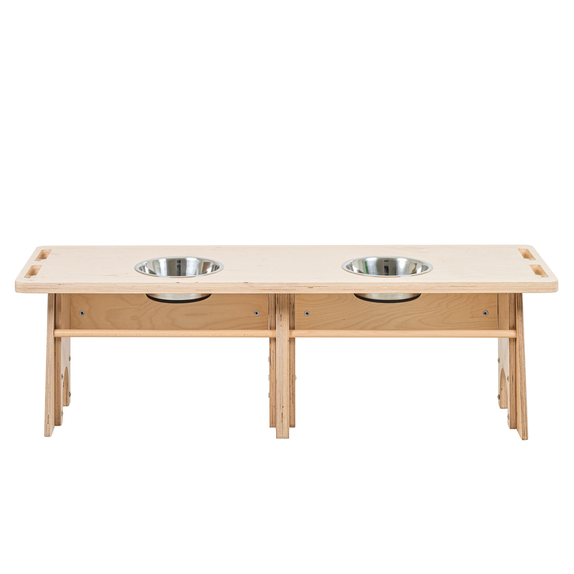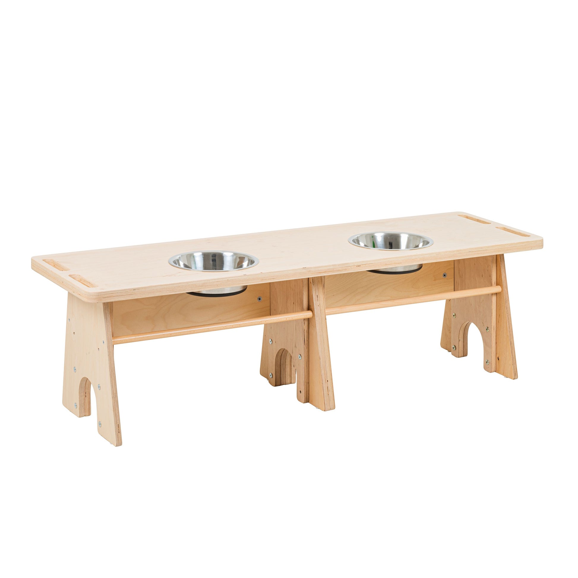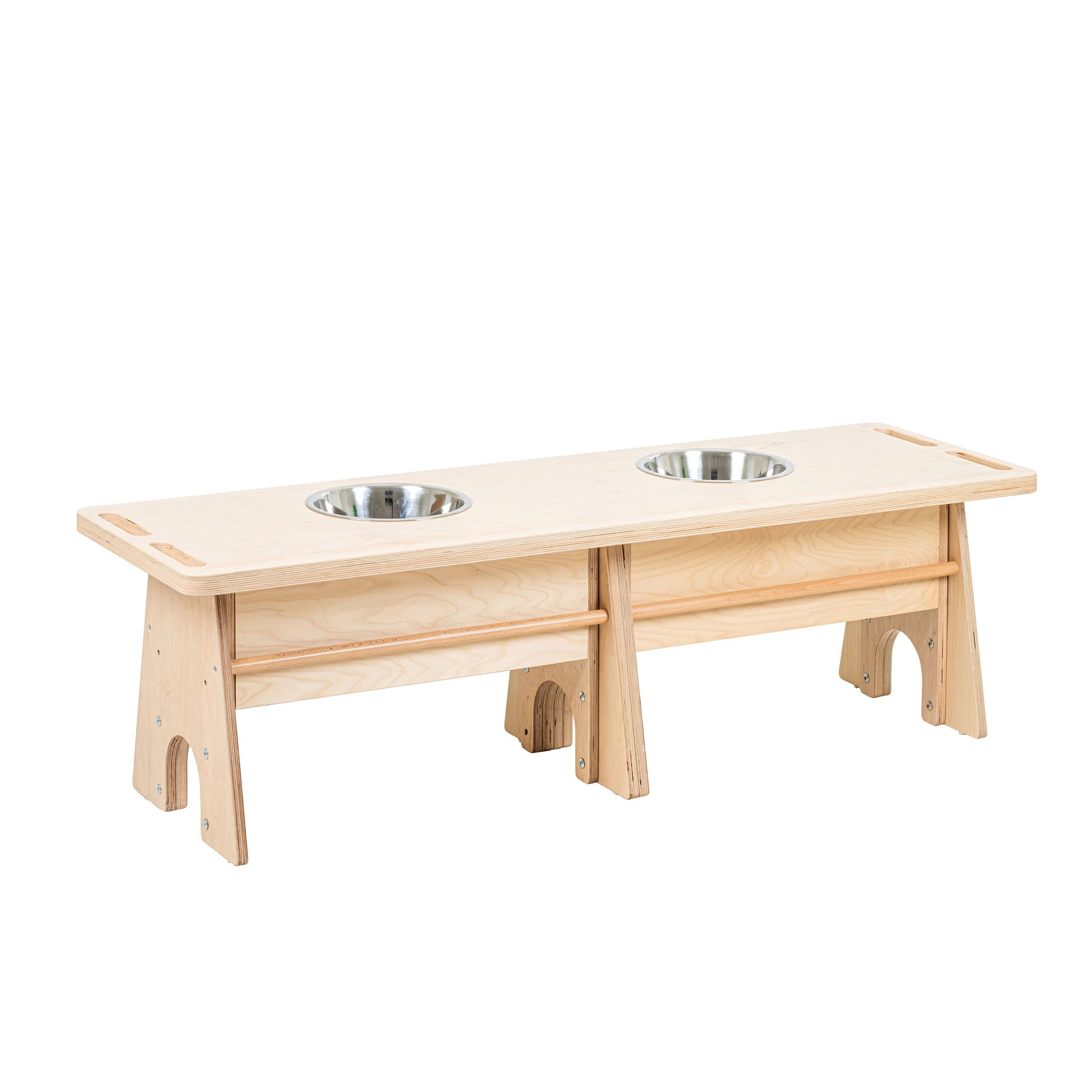 This table is designed to teach children dish washing. The appropriate size of the table aids in the learning process, as well as promotes independence. The table has two metal bowls: one for rinsing water, the other for soapy water. The dimensions are 150 x 52 x 45 cm. Additional dish washing equipment is not included.