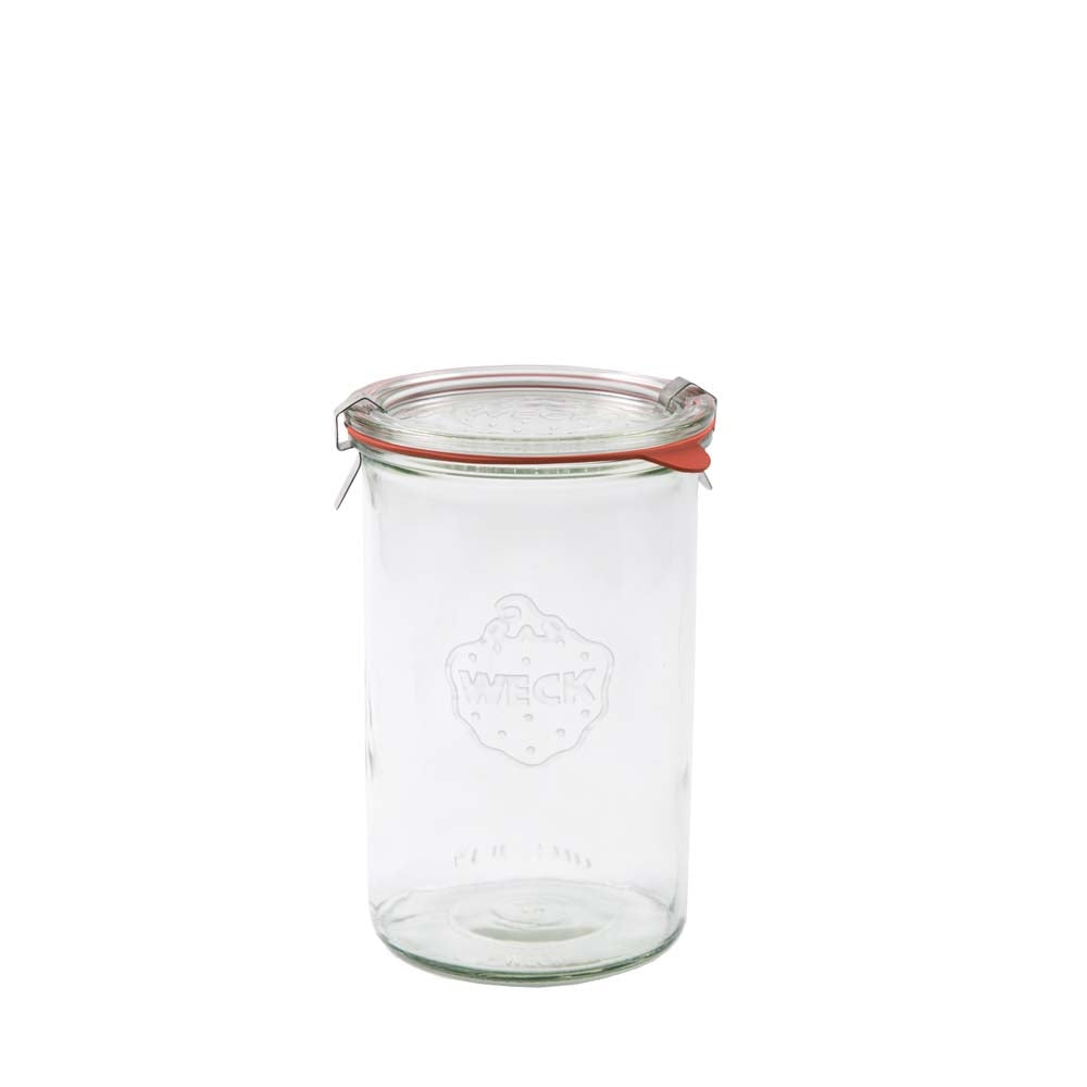 SET OF SIX Large 1050ml Weck Cylinder Jars 16cm high. Each of these classic premium, German made, thick-glass jars comes with a glass lid.You will need to buy seals and clamps (available separately, 100mm seals). Designed for storing jams and preserves, equally good for non-food items.Very stylish design and ideal for giving presents of preserves, jam, or even trinkets.Dishwasher / Microwave safe. 160mm high, 100mm opening, 1050ml volume. Made by Weck in Germany. Model 782.
