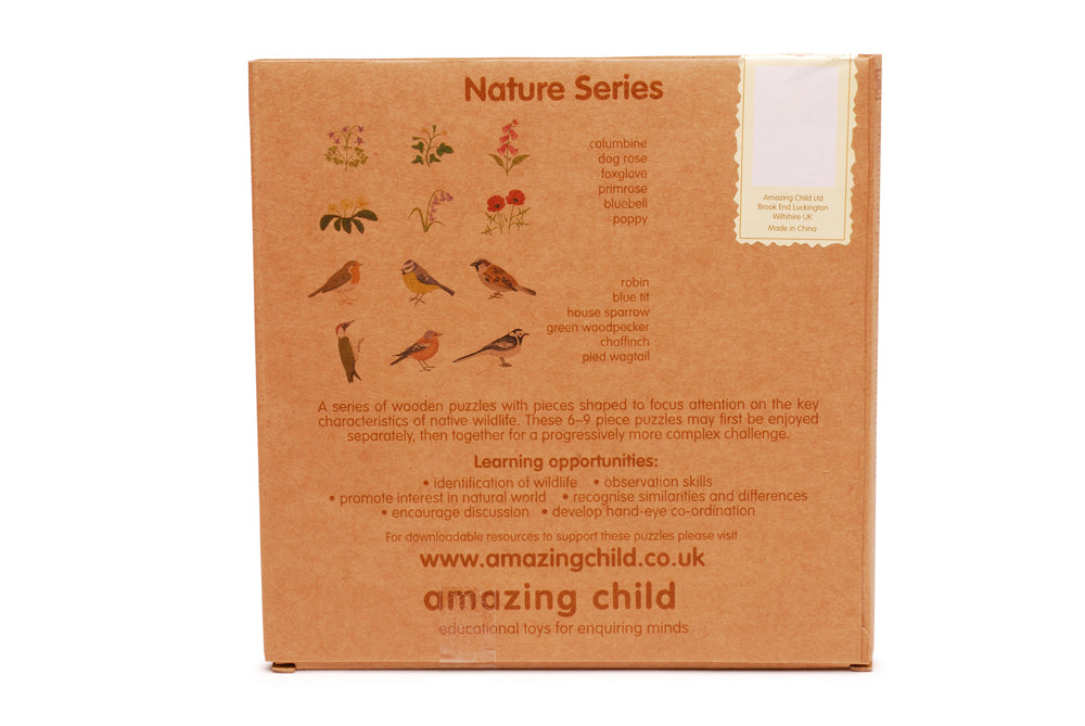 The jigsaw puzzles are based on birds and wildflowers found in Britain and the Europe. They are colourline cut tray puzzles. These puzzles are designed with education in mind: designed to stimulate children's interest in the natural world and help them identify the wildlife represented. It is beneficial if an adult presents the puzzle to initiate discussion and answer questions about the wildlife. Good for any study of the European continent.