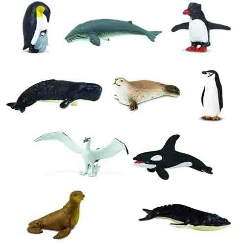 10 small animal figures that are found in the Antarctic:
