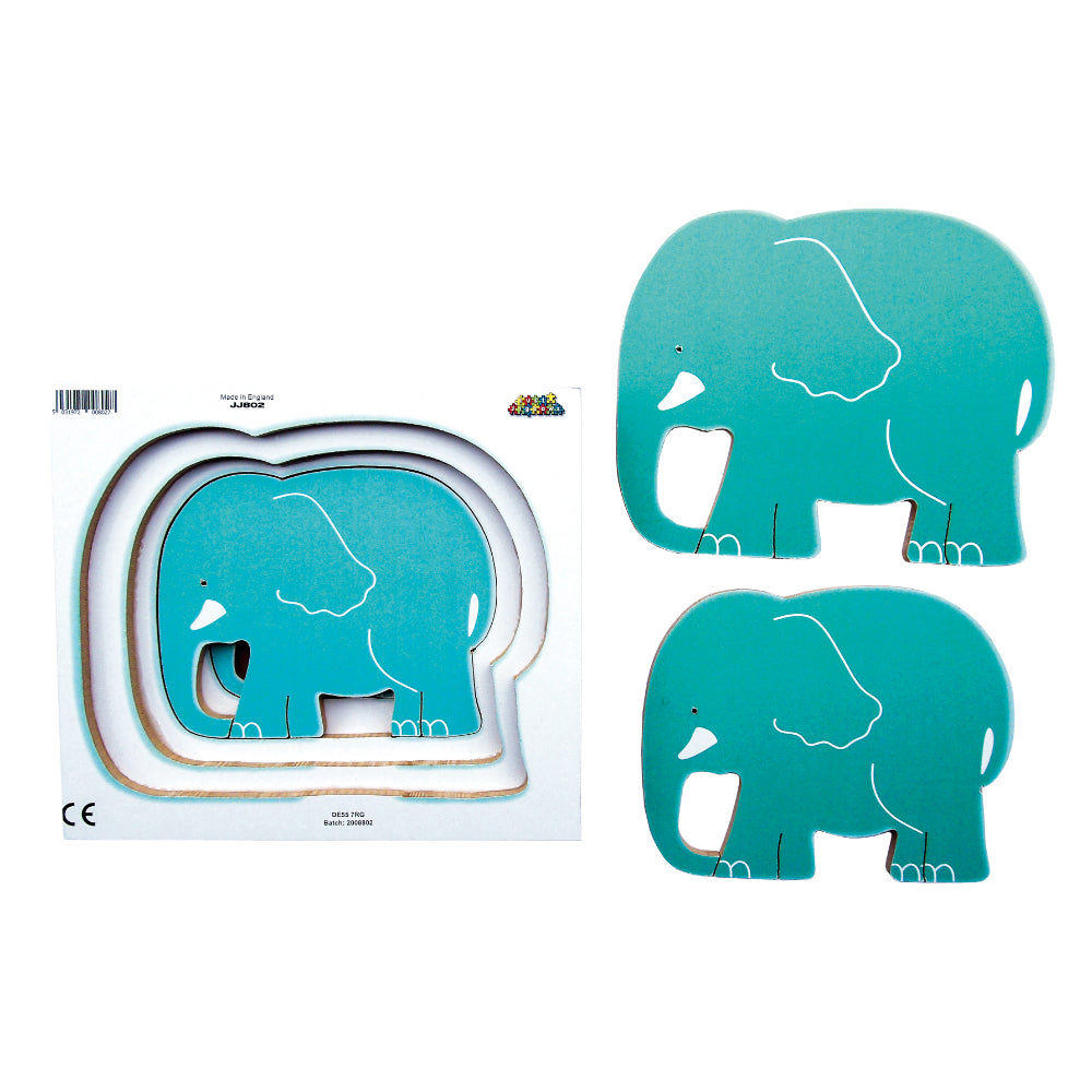 Elephant Layed Puzzle   4 piece puzzle with elephant shaped pieces of decreasing size   ELG: Understanding The World: children know about similarities and differences in relation to places, objects, materials...