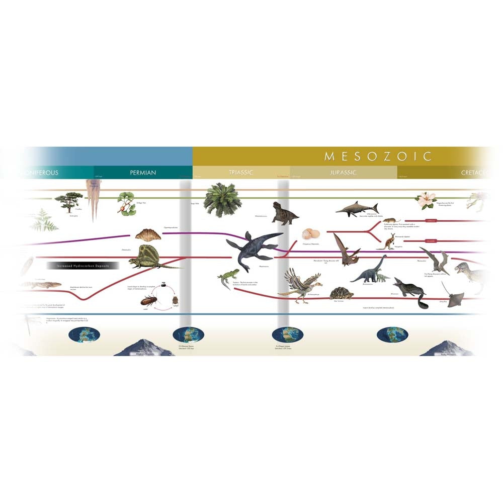 The most accurate and up-to-date Timeline of Life on the market! We have created our Timeline and continue to update it with information contributed by scientists in the Smithsonian Institute and Columbia University. Keeping true to our motto of "Total Montessori", each scientist was handpicked so that in addition to their degrees they also have Montessori credentials. This model continues to have the colour lines to designate the various lineages making it easy for children to follow the evolutionary patterns that lead to modern animals. We have even made it easy to spot the Devonian explosion of plant life. Each lineage line is clearly marked along with detailed images that beautifully illustrate the originating events which lead to various evolutionary patterns such as the development of mammals. In addition, all major extinction events are clearly marked, and we have included all the glacial events, beginning with the two major ones that occurred during the Proterozoic Era. Abundant information allow children to understand events that shaped the evolutionary process. Discover how the great glacial periods along with the greatextinction events changed phyla and species. What sets our Timelines apart is the interconnectivity and the consistency with other materials. Therefore, the pictures as well as the lineage lines are consistent with those students will find when using the Tree of Life (Cladistic model). The working model of the Timeline of life includes: