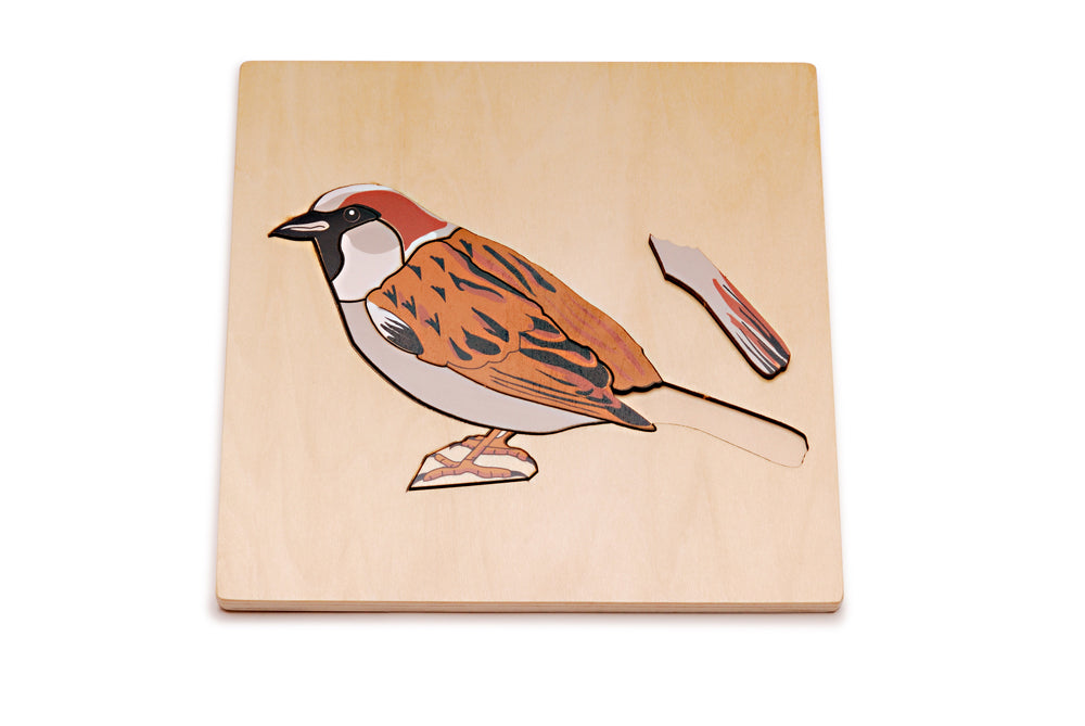 The jigsaw puzzles are based on birds and wildflowers found in Britain and Europe. They are colourline cut tray puzzles. These puzzles are designed with education in mind: designed to stimulate children's interest in the natural world and help them identify the wildlife represented. It is beneficial if an adult presents the puzzle to initiate discussion and answer questions about the wildlife. The 6-9 piece single layer puzzles are designed for the younger child and can be introduced separately. As the child gains confidence and recognition a number of puzzles can be done at the same time, which increases the complexity considerably.