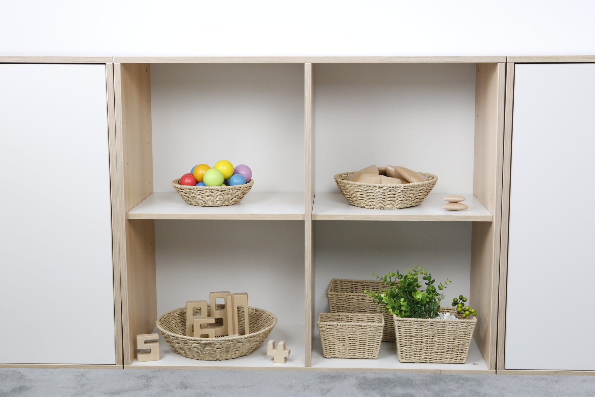 The GAM cabinet range contains cabinets with different locker spaces, and shelves from one layer, two layers to three layers. This range includes storage shelves, trolleys and cabinets to suit any early years environment. All cabinets have a depth of 40 cm and can be stacked. The shelves can be added and removed as required. The shelves are made of double-sided fireproof board. All cabinets have solid beechwood height adjustable feet.