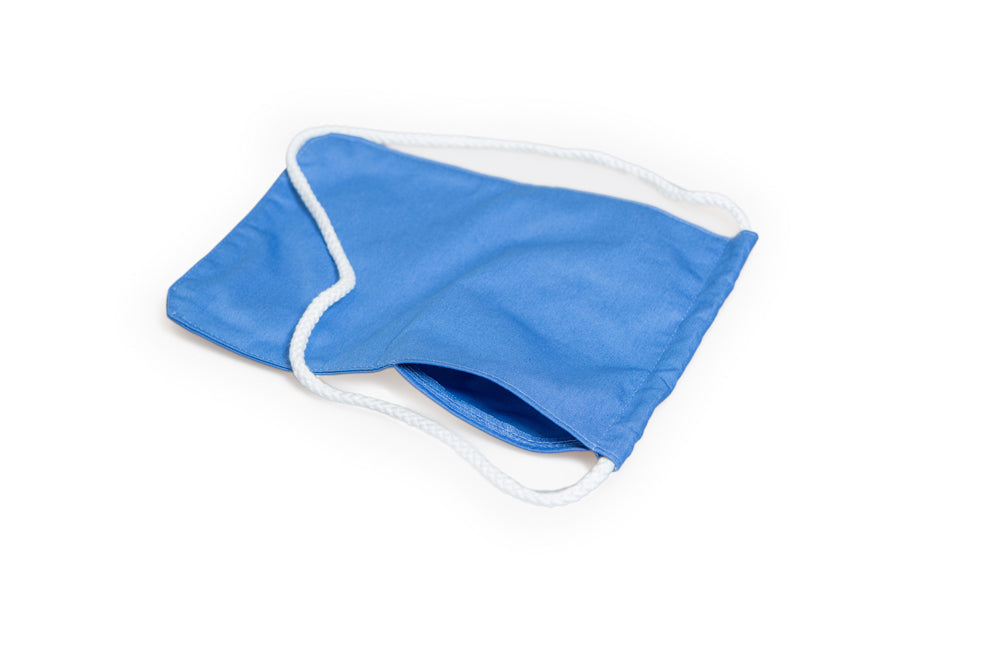 A drawstring cotton bag with side openings to contain objects to feel and match (not included).