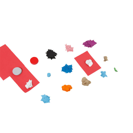 The grammar symbols help to sensorially reinforce each part of speech. There are 15 different symbols, each representing a specific part of speech. The symbols are made from heavy plastic and are stored in a wooden box with lid.