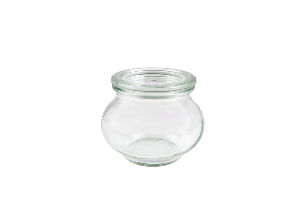 Set of Twelve Jars. Each of these 220ml classic premium, German made, thick-glass jars comes with a glass lid. You will need to buy seals and clamps (available separately, 60mm seals). Designed for storing jams and preserves, equally good for non-food items. Very stylish design and ideal for giving presents of preserves, jam, or even trinkets. Dishwasher safe. 66mm high, 60mm opening, 220ml volume. Made by Weck model 902
