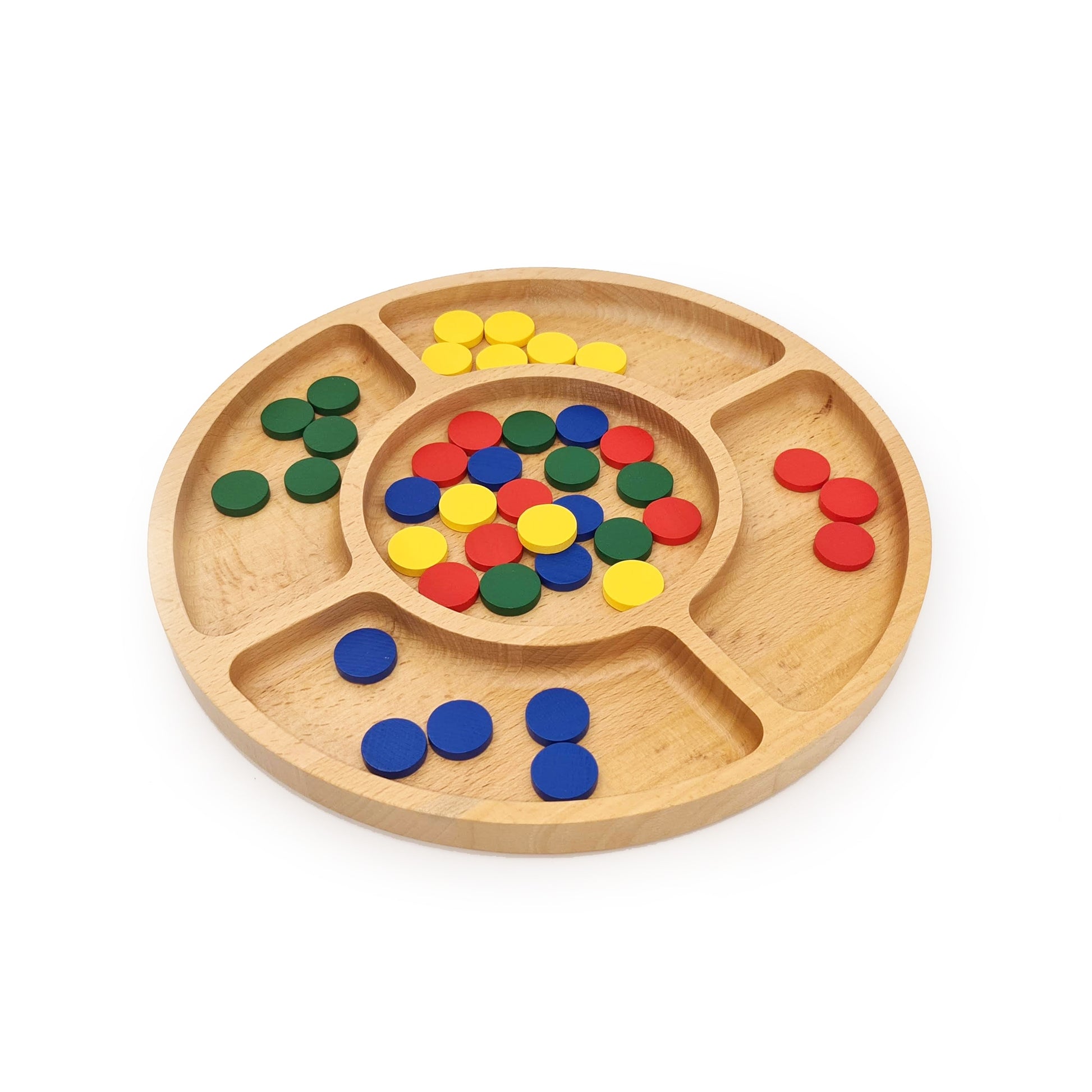 Wooden Round 4 Compartment Sorting Tray